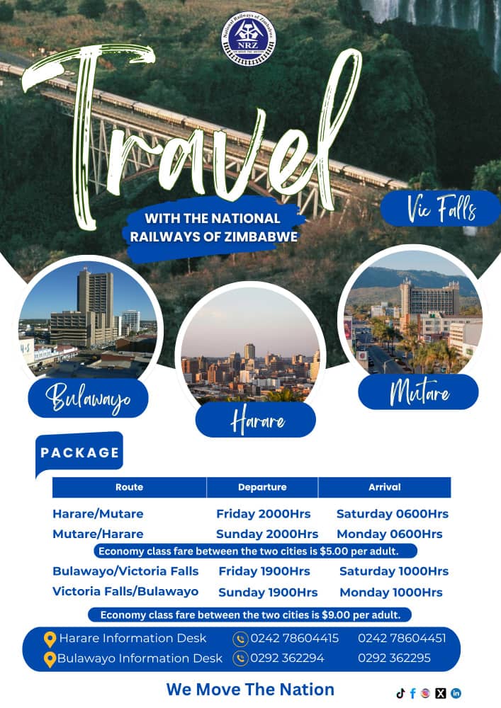 The National Railways of Zimbabwe (NRZ) has relaunched regular passenger train services on the Harare–Mutare and Bulawayo–Victoria Falls routes.